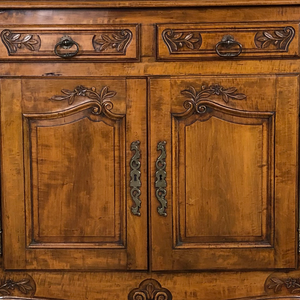 Spanning substantial width and depth, this buffet provides generous concealed storage while presenting a commanding profile. Ideal for formal dining rooms or as a showpiece in a large entryway, it represents a harmonious blend of utility and artistry in the Louis XV tradition.