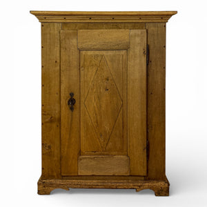 This early 19th century French bonnetière is constructed from solid oak and distinguished by a boldly framed door with a central diamond-shaped panel. Originally designed for linen or clothing storage in provincial households, its tall, narrow form allows it to fit comfortably into tighter spaces while offering generous interior shelving.