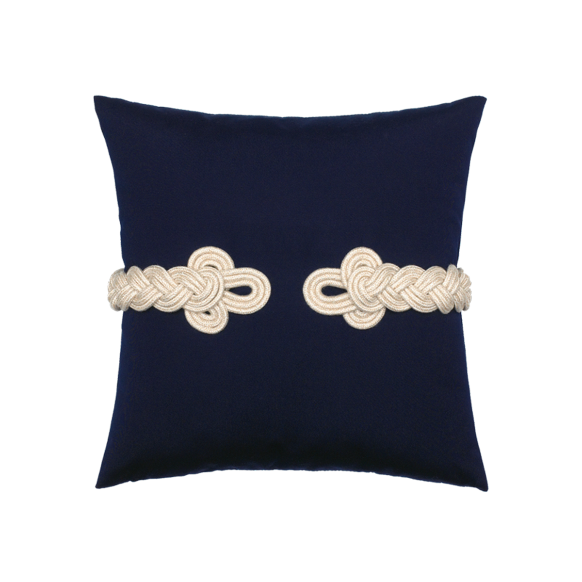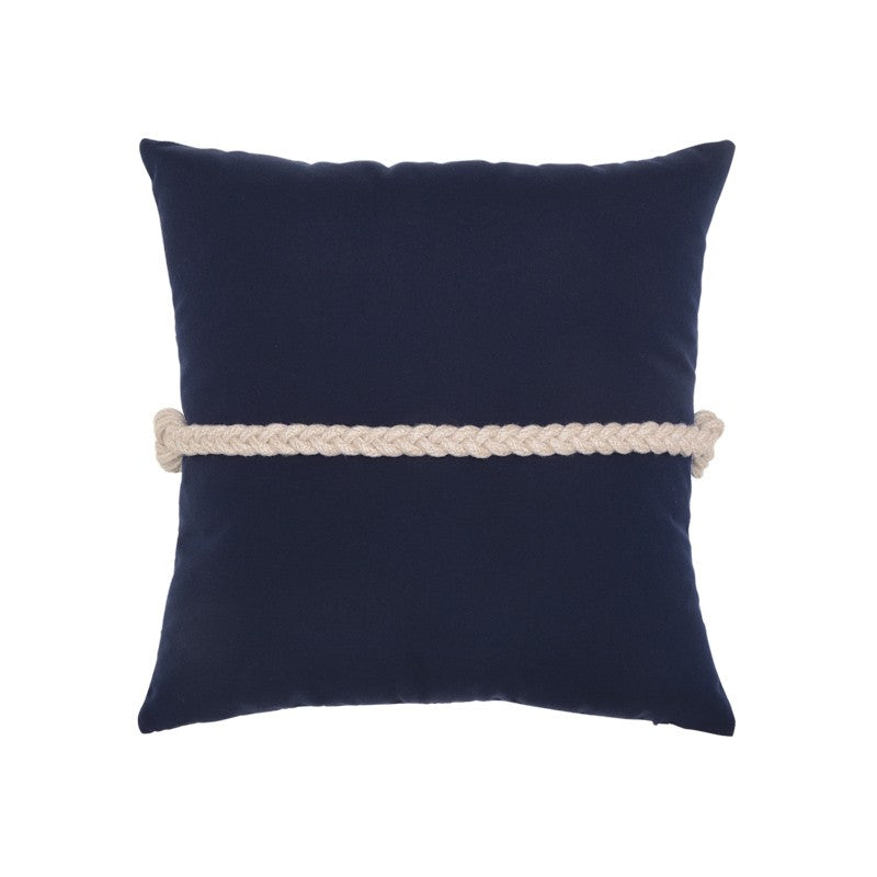 Navy indoor / outdoor pillow with white braided rope